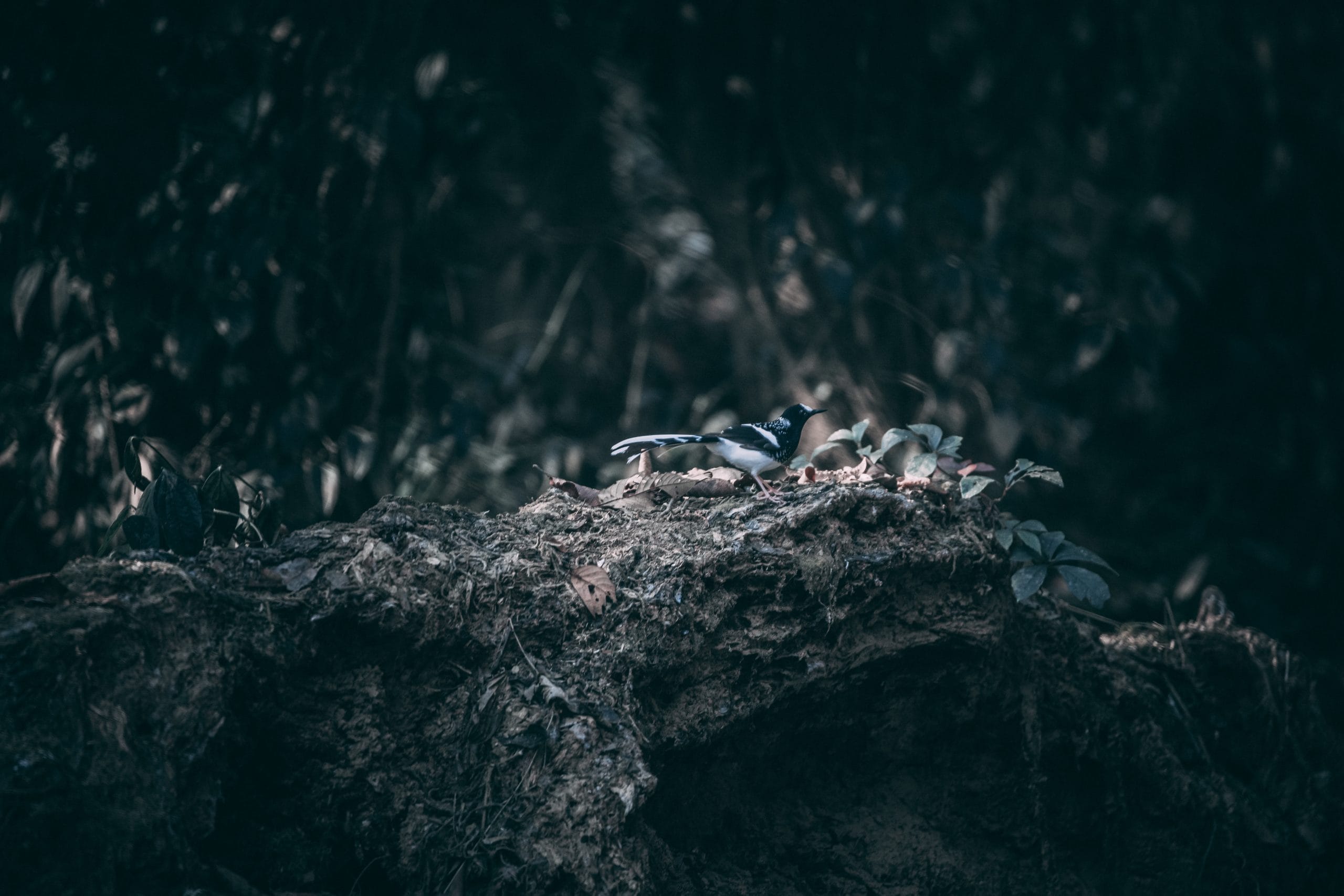 The Spotted Forktail (Enicurus maculatus), known as थोप्ले खोलेधोबिनी in Nepali, is a striking bird associated with clear, fast-flowing streams in forested areas of Nepal, usually in the hills and lower mountains. It is easily recognized by its bold black-and-white plumage and long, deeply forked tail. This bird is typically seen hopping along rocks and stream edges, constantly wagging its tail while searching for insects and aquatic invertebrates. Its presence is often an indicator of clean, undisturbed freshwater habitats.