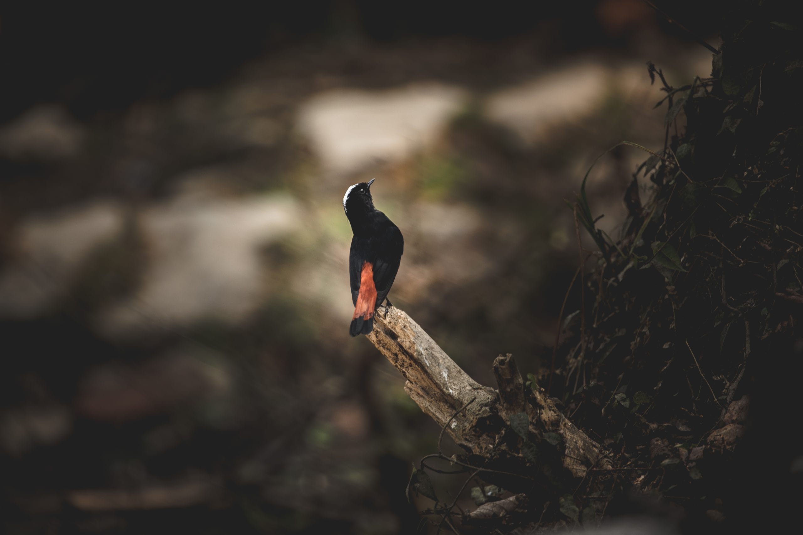 The White-capped Redstart (Phoenicurus leucocephalus), known in Nepali as सेतोटाउके जलखञ्जरी, is a striking bird commonly seen along fast-flowing rivers and streams in the Himalayas, including Nepal. Both sexes feature black bodies with bright red underparts and a bold white cap, making them unmistakable in their preferred habitats. These agile birds often flick their tails and hop on rocks near water, feeding on insects and small aquatic invertebrates. Their presence near mountain streams makes them a favourite among photographers and nature enthusiasts exploring Nepal’s riverine landscapes.