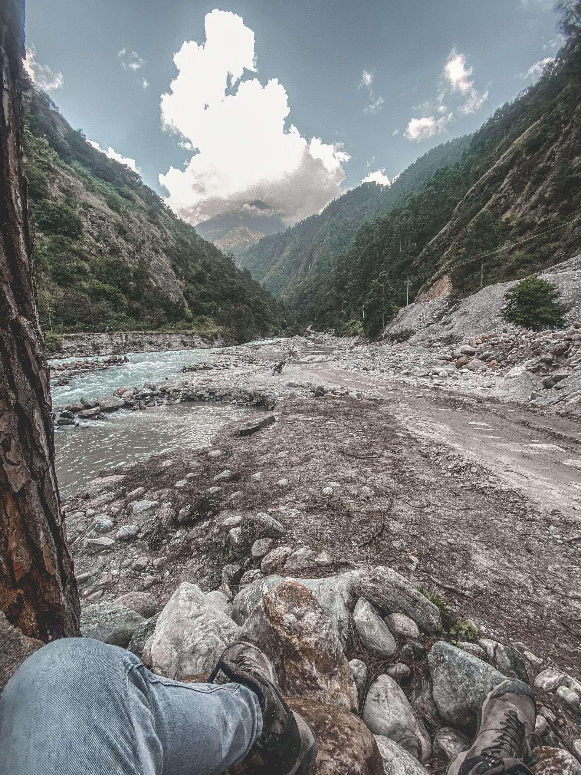 Around Syabrubesi — Ride to Langtang River Bank to Relax