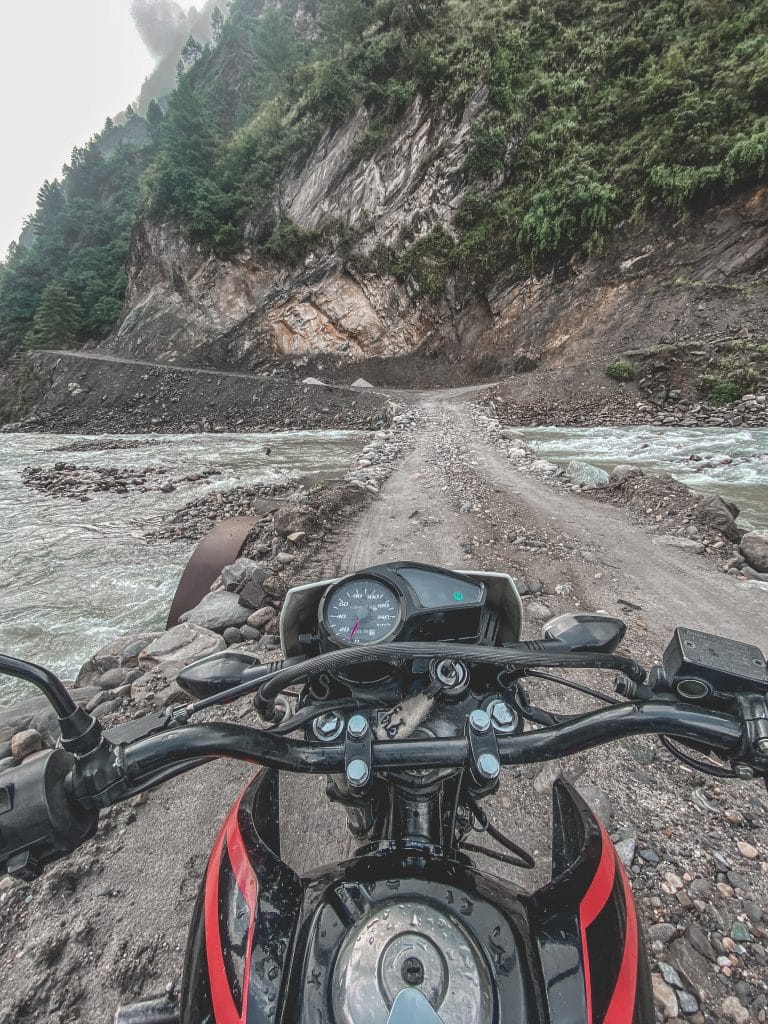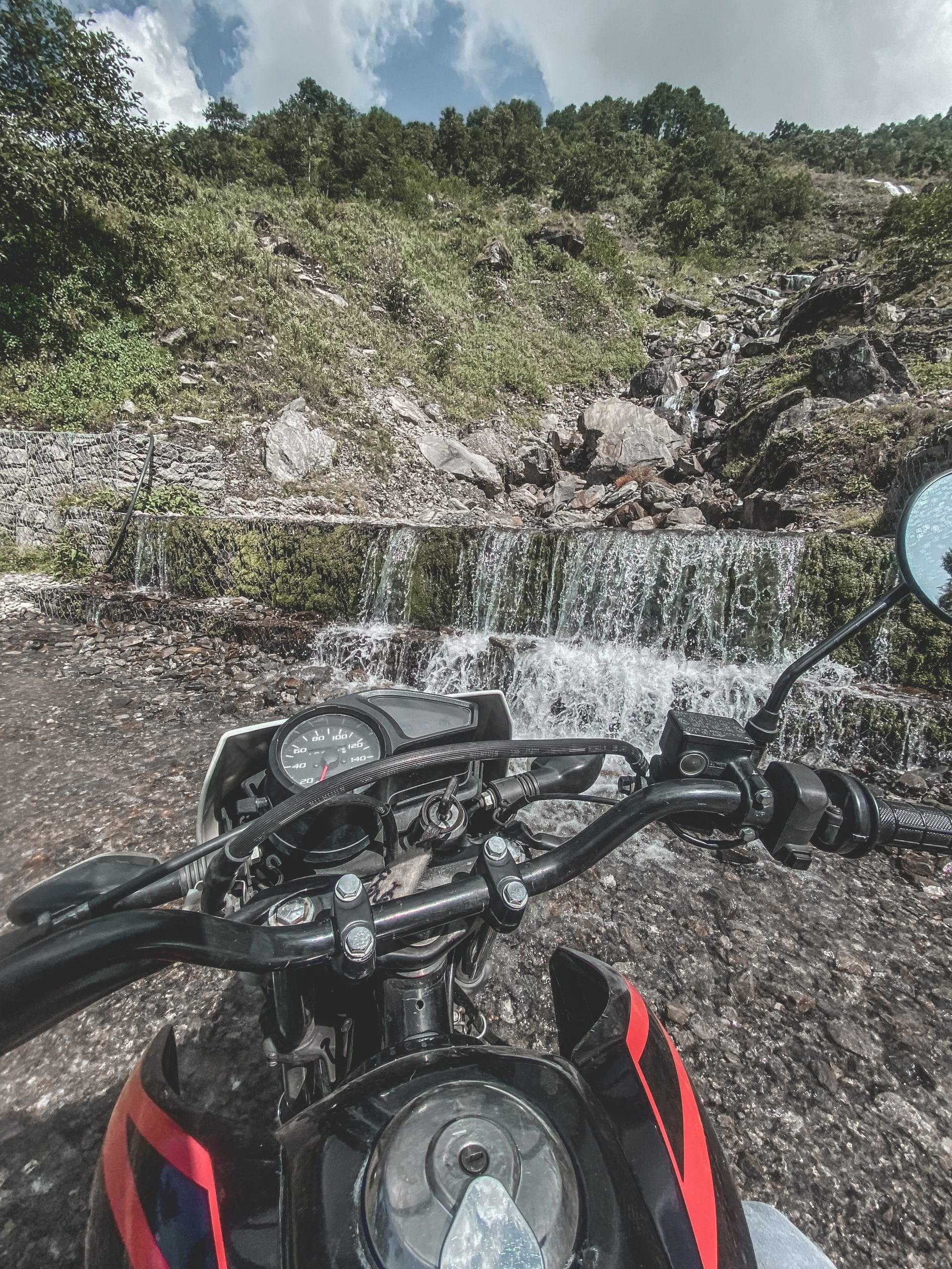 The climb is rugged — muddy tracks, loose stones, and sections where the wheels fight for grip. In monsoon, the road becomes an adventure of its own, more river than road in places. But the challenge makes the journey feel real. Every bump and slide is the mountain testing you, reminding you that beautiful places are rarely easy to reach.