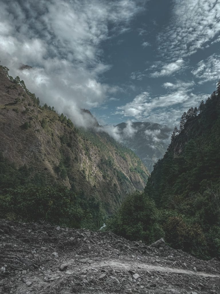 Leaving Kathmandu, the landscape shifts quickly. One moment you’re surrounded by traffic, the next you’re inside Shivapuri’s quiet green corridors. Pine forests, winding roads, the smell of damp soil — everything feels slower and calmer. Small teahouses dot the bends, offering steaming milk tea and warm air that contrasts with the mist outside. This stretch feels like a gateway — the place where the city ends, and the journey truly begins.